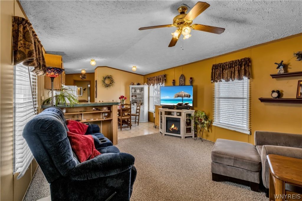 Welcome to your new sanctuary in Batavia! This beautifully maintained, newer-built '01 manufactured home offers a spacious and rare 3-bedroom, 2-BATHROOM layout designed for both privacy and connection. Relax in the primary suite wing, which serves as a true retreat featuring a renovated private en-suite bath and a convenient walk-in shower. Two additional bedrooms share a second full bath, providing plenty of space for family or guests. The heart of the home is the expansive Country Kitchen that is open to the family room, complete with a breakfast bar and a flexible floor plan that allows for any dining or seating arrangement you desire. This home has upgraded windows and doors for better insulation, completely renovated bathroom, modern flooring in master bedroom. Maintenance-free vinyl siding, concrete patio and a dedicated storage shed. New heat tape (replaced in 2024) for peace of mind through the winter. Practicality is a breeze here with a DOUBLE-WIDE driveway plus additional parking right at the road-unmatched convenience for you and your guests. Tucked away from the immediate hustle and bustle while remaining close to everything you need, this home is the definition of clean, beautiful, and affordable. Located right next to Terry Hills Golf Course. Move right in and start living! Showings begin Friday 04/24/2026.